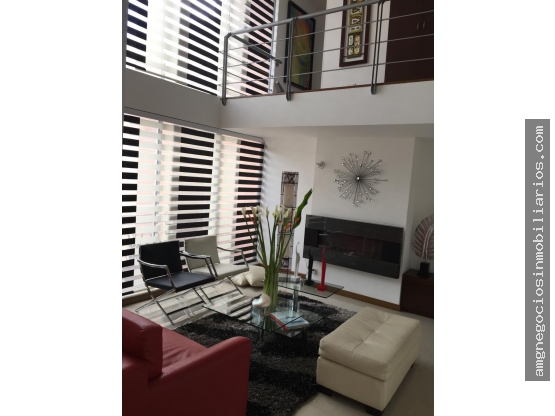 El Apartamento cuenta con dos niveles, dos garajes independientes y depósito junto al Apto. Tiene sala de doble altura con chimenea, comedor, cocina integral, estudio, dos habitaciones con baño completo, baño social, zona de ropas y cuarto con baño de servicio. En el segundo piso: estar, habitación principal con baño privado y terraza de 25 m² con cortavientos en vidrio templado.